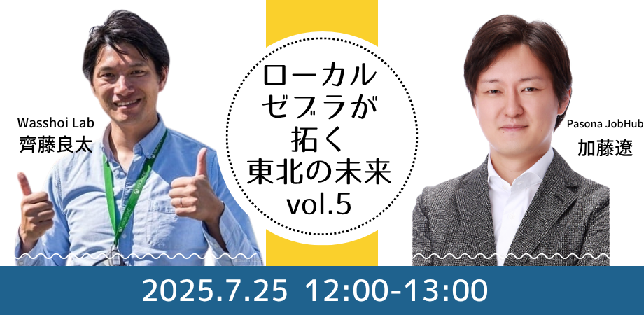 ゲストに株式会社パソナグループ・パソナJOB HUBの加藤氏と、Wasshoi Lab の齊藤にて、対談形式で現場の視点を交えたディスカッションを行います。今回のテーマは、「社会への投資とは何か?」を問いかけたいと思います。